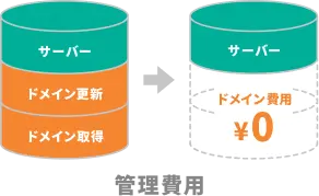 サーバーとドメインを同時に契約することで、ドメイン取得費用が0円になり、契約を継続する限り更新費用も無料です。